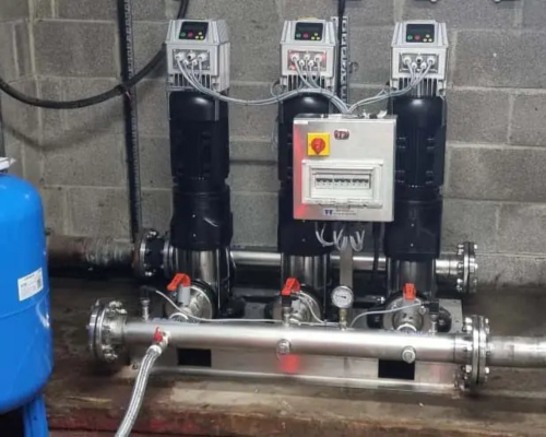 Working closely to the brief, T-T’s own dedicated engineers installed and commissioned our T-T Hidro Boost® DAS VXR15-3 T VSD, a Duty / Assist / Standby set complete with 3kw VXR15-3 vertical multistage pumps, stainless steel suction and delivery manifolds.